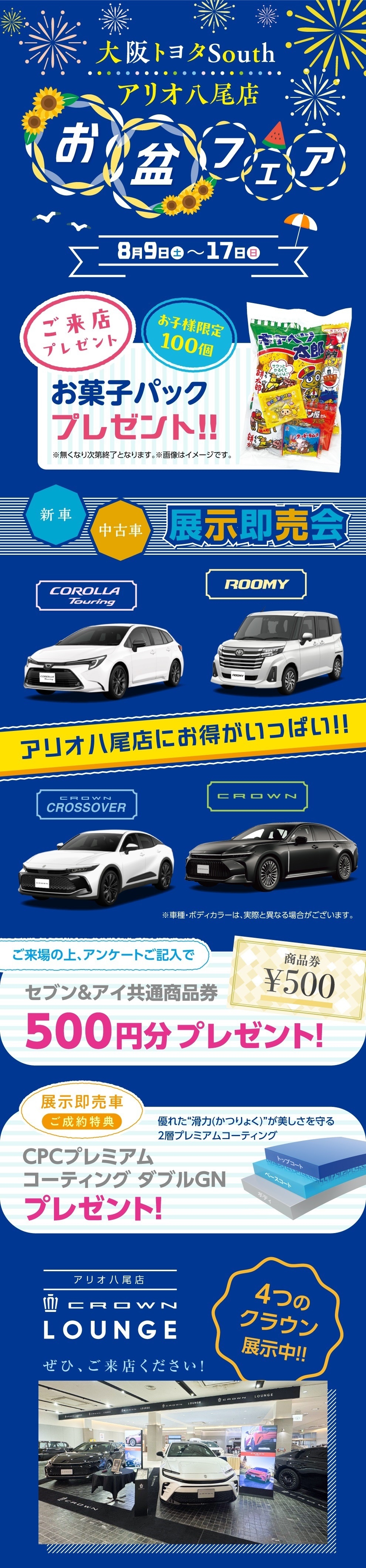 8/9~17🌻アリオ八尾店限定🌻お盆フェア開催🌻 2025.08.07 大阪トヨタSouthアリオ八尾店 お盆フェア 大阪トヨタ South アリオ八尾店です 今年も 開催します🎉 アリオ八尾店限定 お盆フェア 8/9~17 休まず 営業しております ☎アリオ八尾店☎ ☎072-999-8600 前の記事へ 店舗ブログ一覧に戻る 次の記事へ