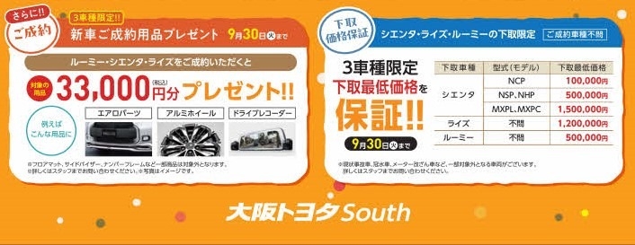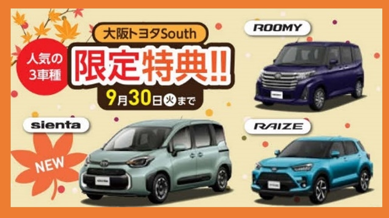 大阪トヨタSouthまだまだ間に合う秋祭り!! 2025.09.25 大阪トヨタSouth泉佐野店 1st秋祭り こんにちは 大阪トヨタSouth 泉佐野店です (*^^)v まだまだ 続くよ秋祭り!!🍁 お得がいっぱい 秋祭り!!🍁 泉佐野店では 下記3車種限定 新車ご成約 プレゼントは 9月29日(月) まで続きます (/・ω・)/ 上記3車種 ご成約で ドーンとプレゼント!! まだまだ間に合う 秋祭り!! この機会に ご家族そろっての ご来店 スタッフ一同 こころより お待ちしております (*^^*) 前の記事へ 店舗ブログ一覧に戻る 次の記事へ