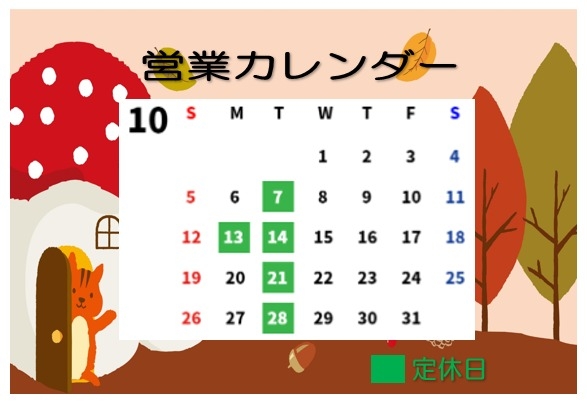 10月の営業日のご案内