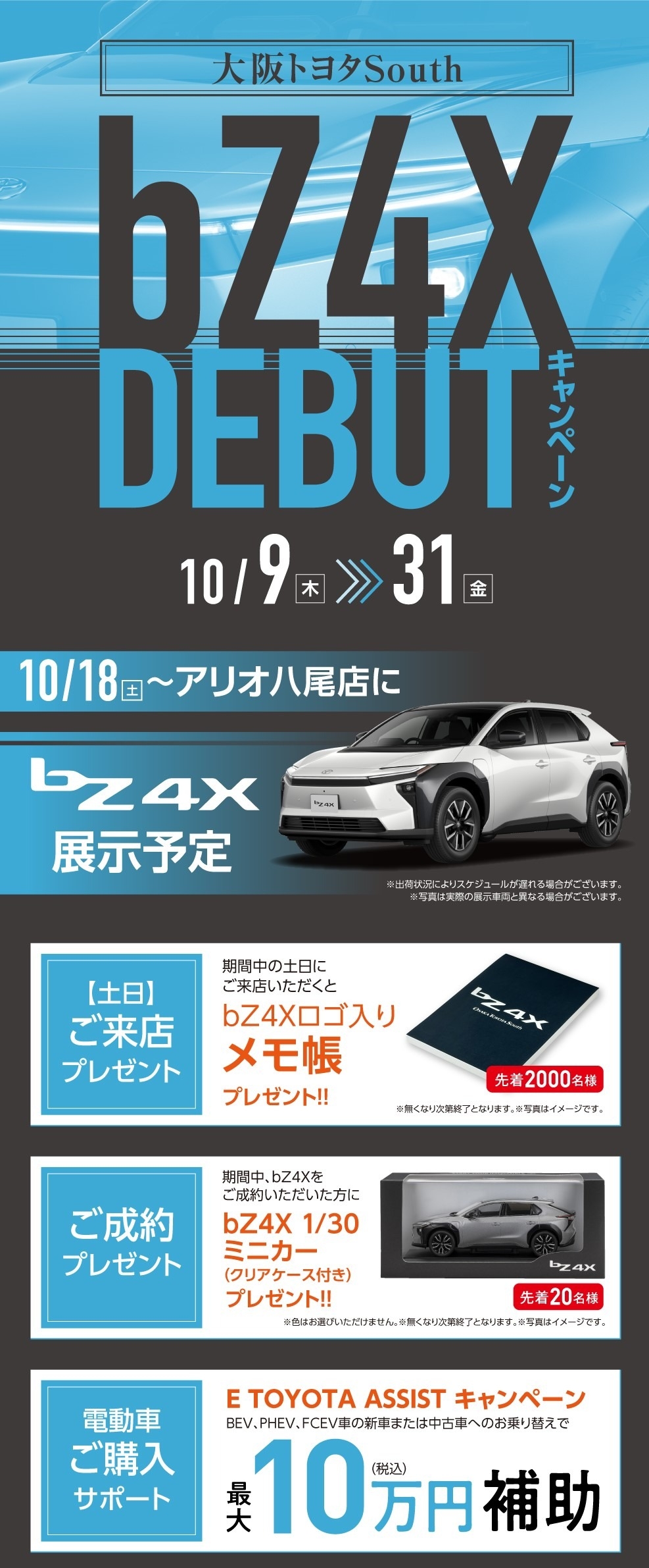 bZ4XDEBUTキャンペーン開催中! 2025.10.11 bZ4X 大阪トヨタSouth中環平野店 こんにちは! 大阪トヨタSouth 中環平野店です いつもブログをご覧いただきありがとうございま😌 トヨタの電気SUV bZ4Xが生まれ変わって発売されました‼ 🔦bZ4Xは100%電気だけで走行します🔦 ただいま大阪トヨタSouthでは bZ4X DEBUTキャンペーンを開催中☺ !新たに生まれ変わったbZ4Xをご期待ください! 皆様のご来店お待ちしております💖 詳しくは こちら 前の記事へ 店舗ブログ一覧に戻る 次の記事へ