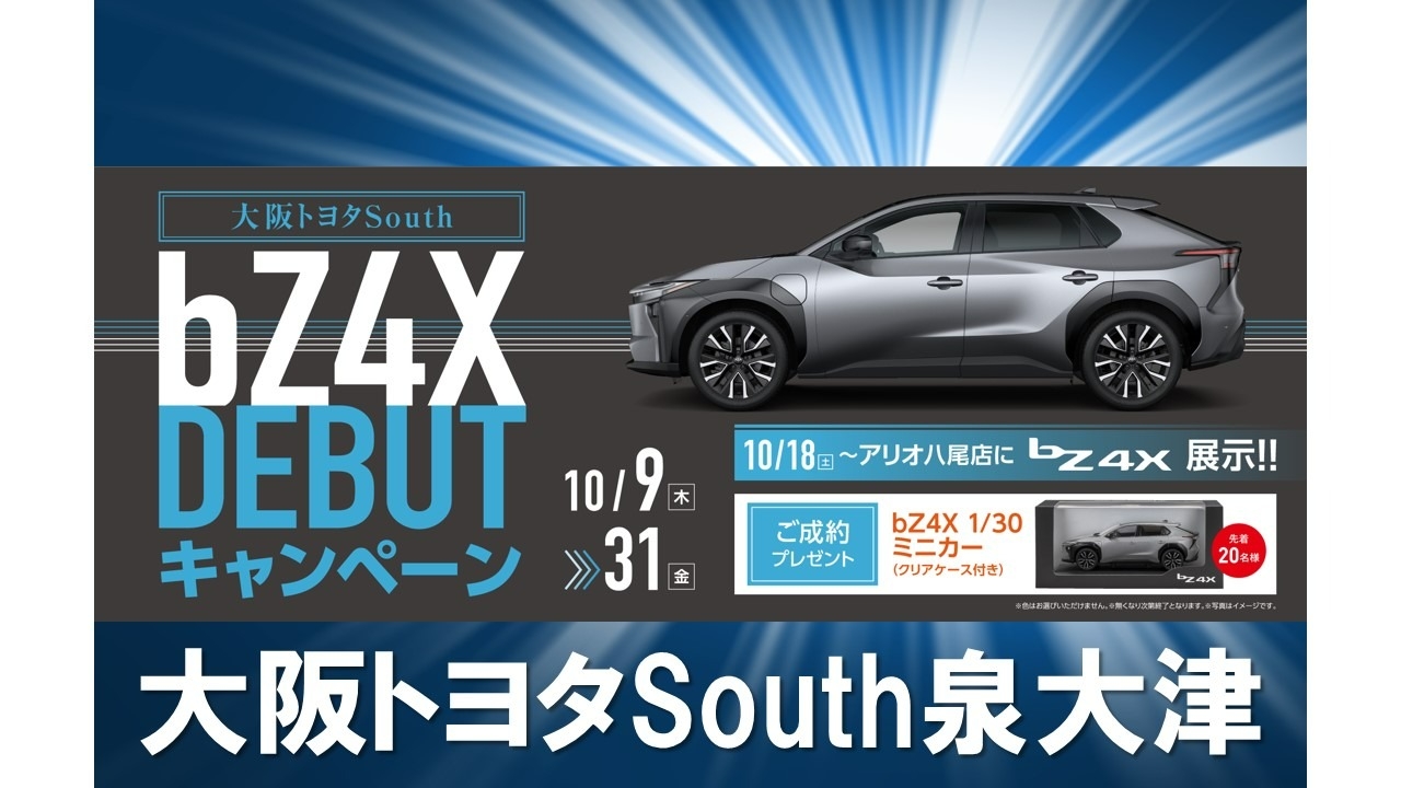 11/1~3の3日間限定!今話題の電気自動車bZ4X(展示車)が泉大津店にやってくる!!