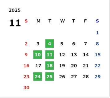 11月店営業カレンダーを