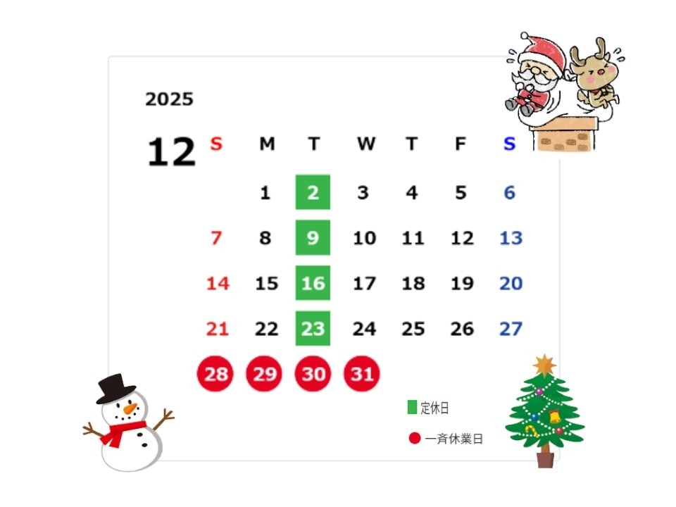 🎄2025年12月 営業日のお知らせ🎄