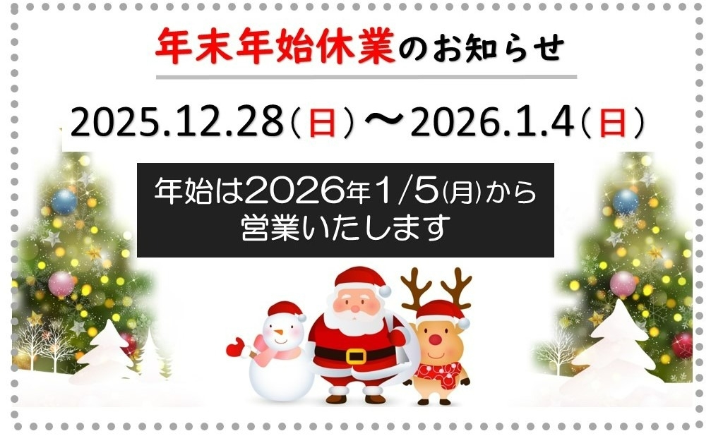 🔔年末年始休業日のご案内&メンテナンス予約状況