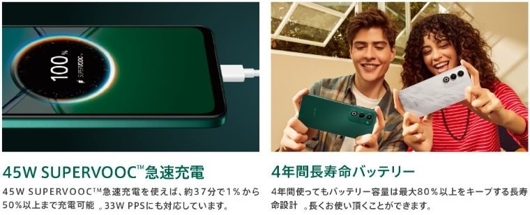 OPPO開発の急速充電 45W SUPERVOOC に対応し、