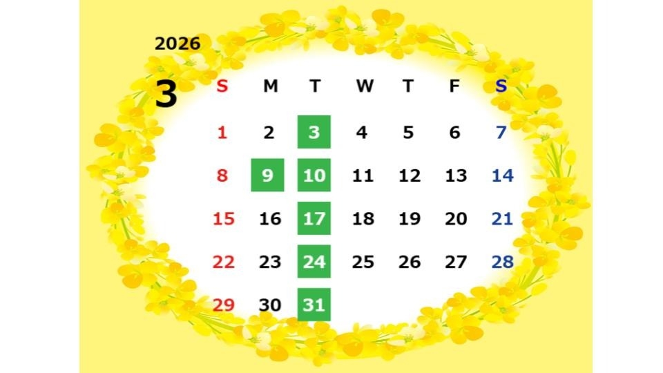 🌷🌷🌷定休日のご案内🌷🌷🌷 2026.03.07 3月 営業カレンダー 大阪トヨタSouth天王寺店 みなさま こんにちは♡ 大阪トヨタSouth天王寺店のブログを ご覧いただきありがとうございます (⋈◍>◡<◍)。✧♡ 🌷🌷🌷🌷🌷🌷🌷🌷🌷🌷 日差しに 近づく春の暖かさが感じられますね🌷 花粉対策もお忘れなく! 3月の定休日をご案内いたします 今月もみなさまのご来店を 心よりおまちしております(*^▽^*) 🌷🌷🌷🌷🌷🌷🌷🌷🌷🌷 前の記事へ 店舗ブログ一覧に戻る 次の記事へ