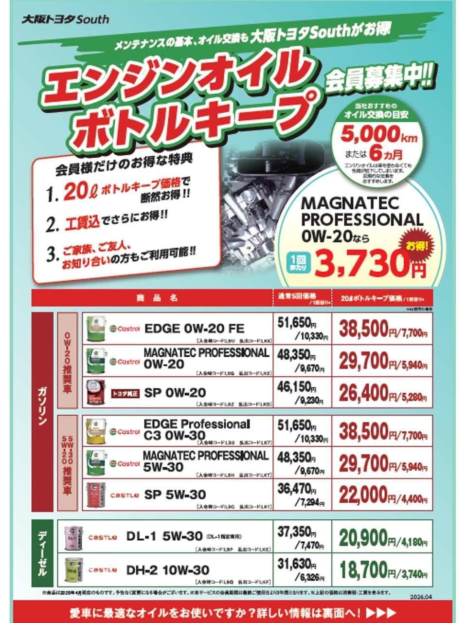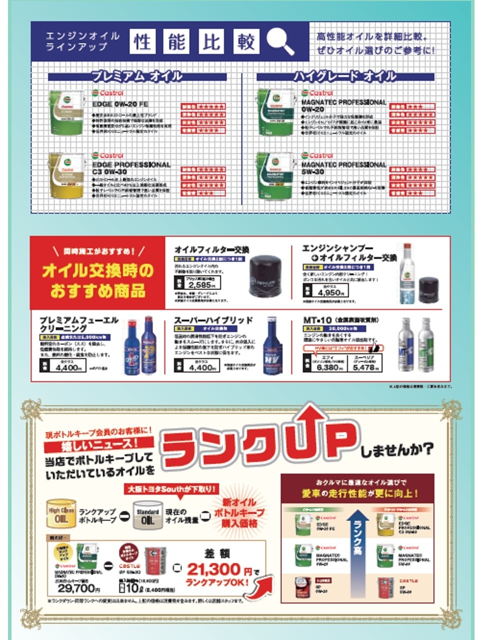 【重要】エンジンオイル・エンジンオイルボトルキープ価格改定のお知らせ