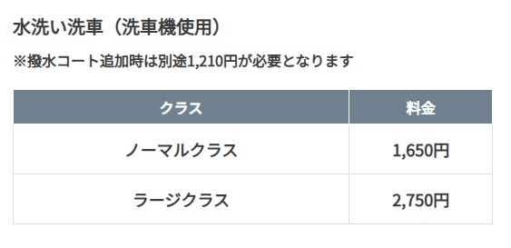 機械洗車のみの料金はコチラ