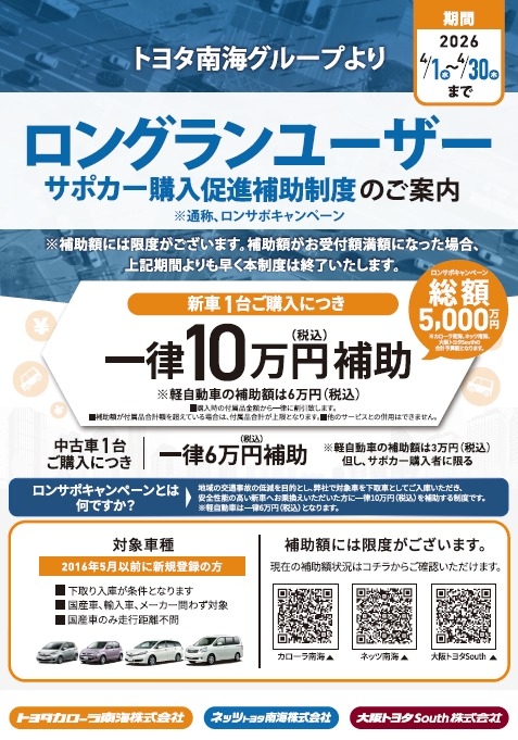 最新の安全機能を備えた「サポカー」へお乗り換えいただきことで