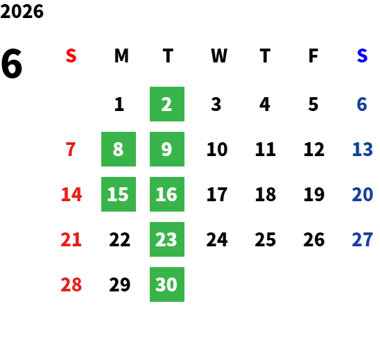 毎週火曜日・第二月曜日