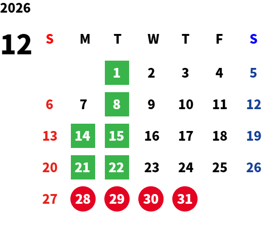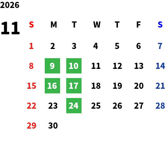 毎週火曜日・第二月曜日