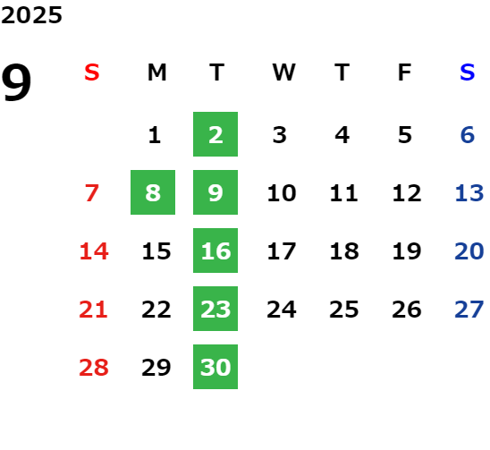 毎週火曜日・第二月曜日